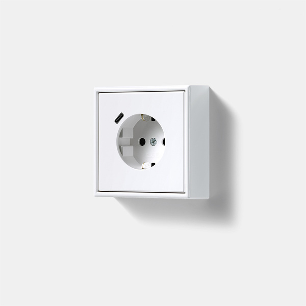 Einige Unterputzgeräte benötigen eine tiefe Gerätedose wie die SCHUKO® Steckdosen mit USB-Anschlüssen oder die smarten SCHUKO® Steckdosen von JUNG HOME. Die Lösung: Der Rahmen mit 28-mm-Aufbauhöhe im JUNG Design. Der Rahmen mit einer Aufbauhöhe von 28 mm ist die Lösung, um vor Ort einen erweiterten Anschlussraum sicherzustellen. Der Rahmen und der Adaptertragring von JUNG gewährleisten den normativ geforderten Freiraum von 8 Millimetern zwischen Gehäuseboden und dem Gerätedosenboden.